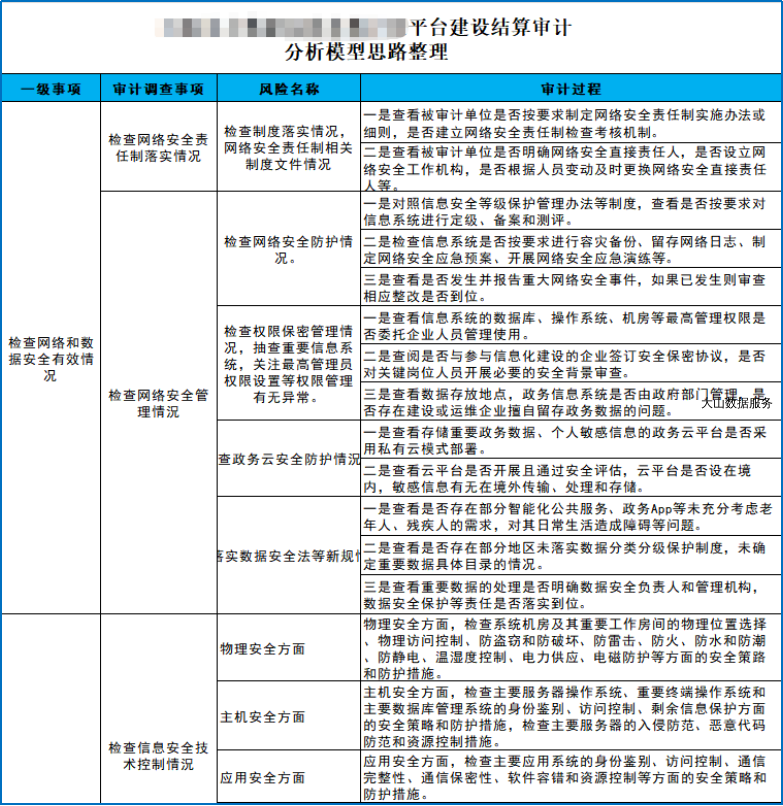 为严格落实《中华人民共和国审计法》《国家政务信息化项目建设管理办法》《基本建设项目建设成本管理规定》等国家政策法规要求,切实履行审计监督职责,规范数字政府系统建设投资项目管理,保障财政资金安全高效使用,助力数字政府建设提质增效,开展本次数字政府系统建设投资项目结算审计工作。本次审计项目作为全省数字政府规划建设重要组成部分,严格落实上级“全省一盘棋”及“统一标准规范、分级建设运营、强化考核评估”的决策部署,紧扣改善营商环境、满足群众美好生活向往、提升政府治理能力现代化水平的核心要求,以深化“放管服”改革为切入点推进建设。开展本次审计,既是落实国家政策法规及上级规划考核要求的刚性举措,也是履行财政资金监管、规范建设流程、防控资金风险的必然要求,通过全面核验项目造价、合同履约及资金支付合规性,落实国家政务信息化项目全生命周期监管要求,夯实资产入账基础、明确运维权责边界,为后续工作提供审计依据,保障项目闭环管理、释放财政资金效益。近日,大山科技大数据审计团队受邀协助某审计机关,正式开展本次数字政府平台结算审计数据审计服务工作。